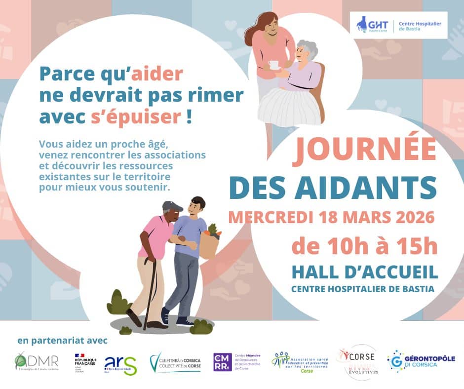 Mercredi 18 mars de 10h à 15h dans le hall d’accueil du Centre Hospitalier de Bastia Le Centre Hospitalier de Bastia organise, le mercredi 18 mars, de 10h à 15h, la Journée des aidants destinée aux personnes accompagnant un proche âgé. Cet événement, qui se tiendra dans le hall d’accueil du Centre Hospitalier de Bastia, […]
